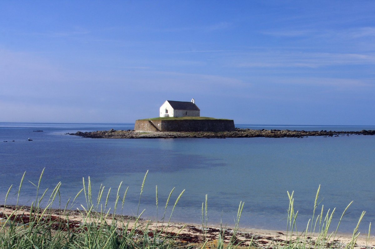 Known as the “little church in the sea”, St Cwyfan stands on a tidal island off the Anglesey coast. Its remarkable location and surrounding seascape make it one of the most distinctive and cinematic churches in Wales.