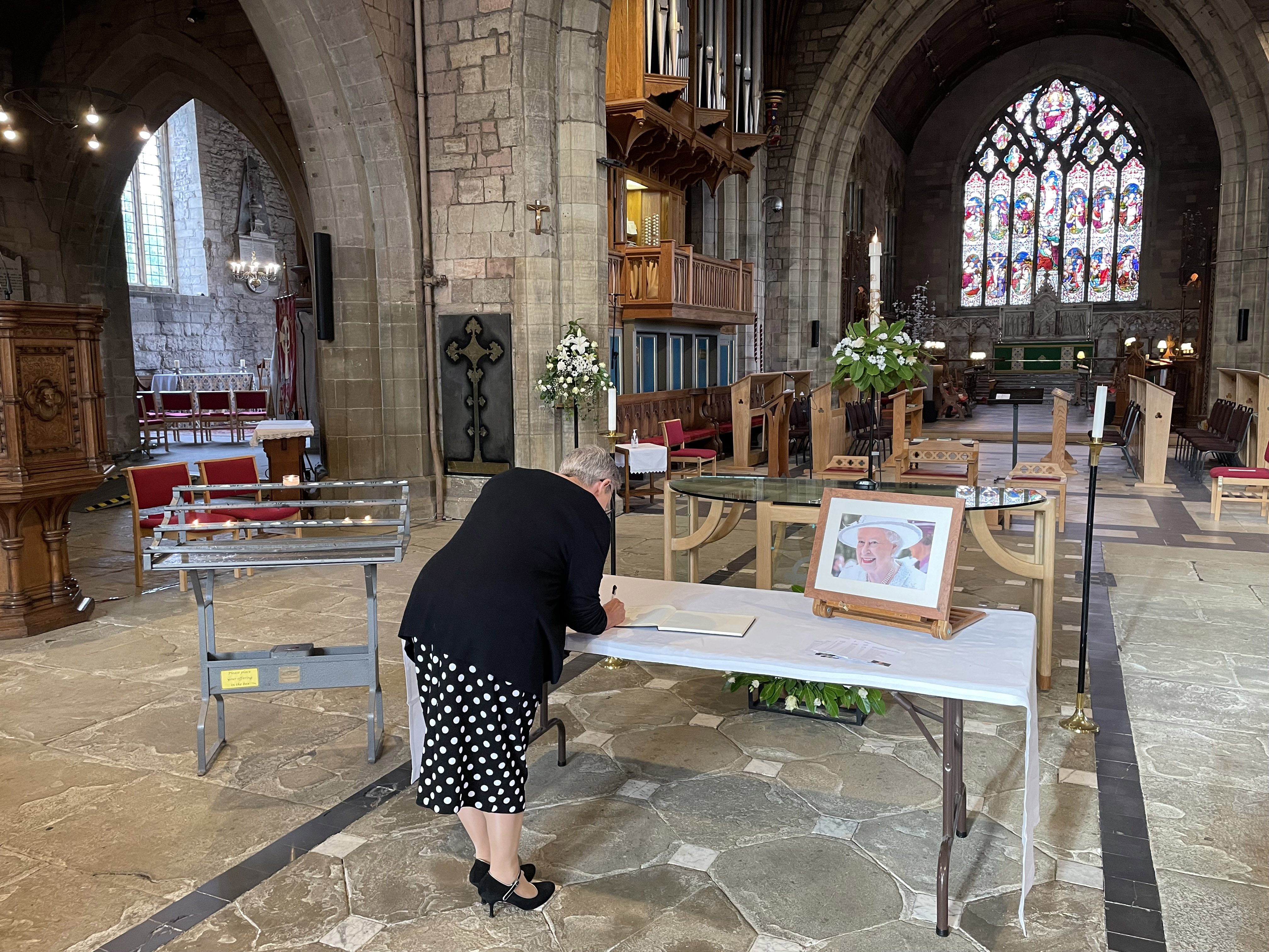 Signing the book of condolence in St Asaph Cathedral.jpg